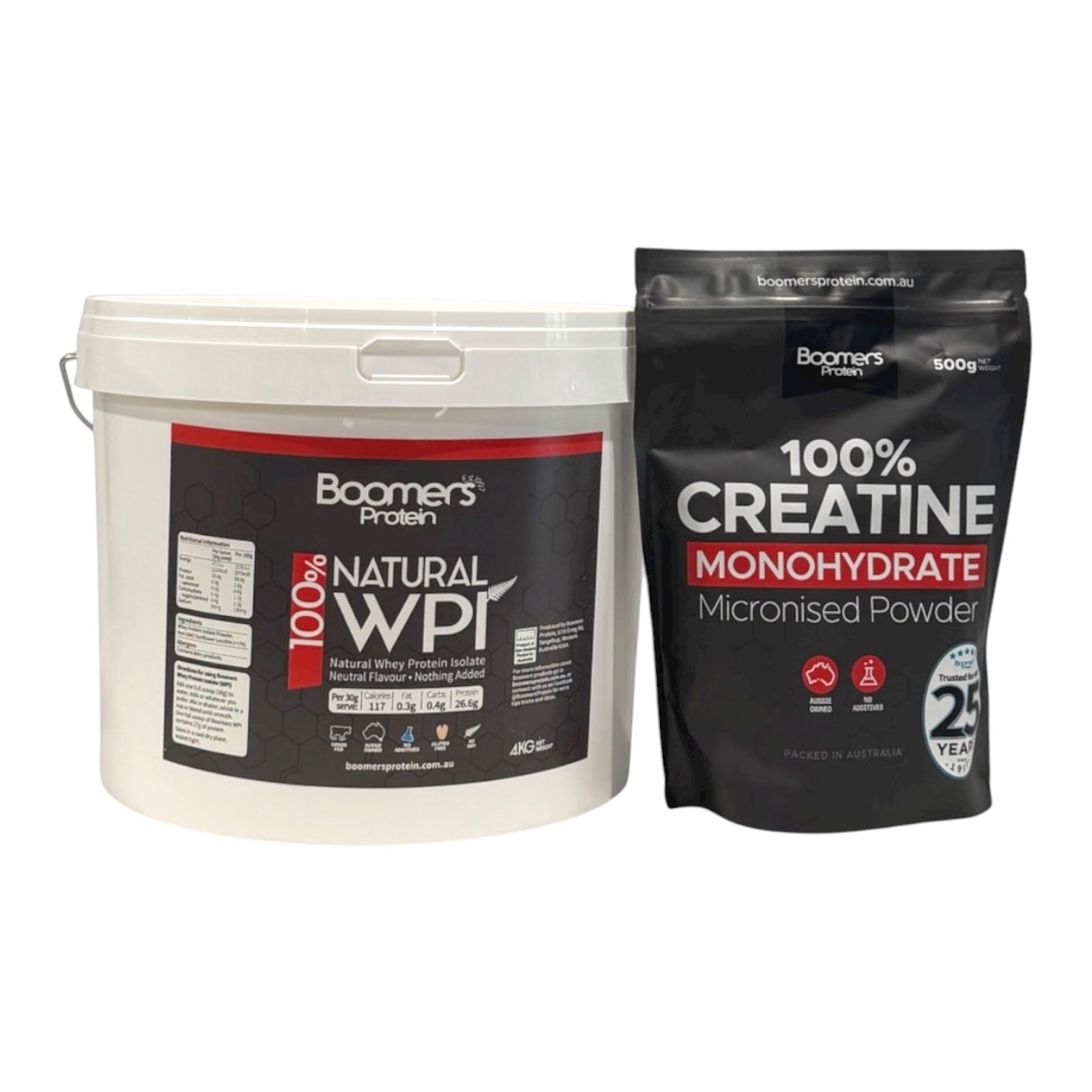Fuel your body and mind with the Boomers Performance Pack. This powerful duo — Whey Protein Isolate and Creatine Monohydrate— supports lean muscle giving you the foundation to perform at your best every day.