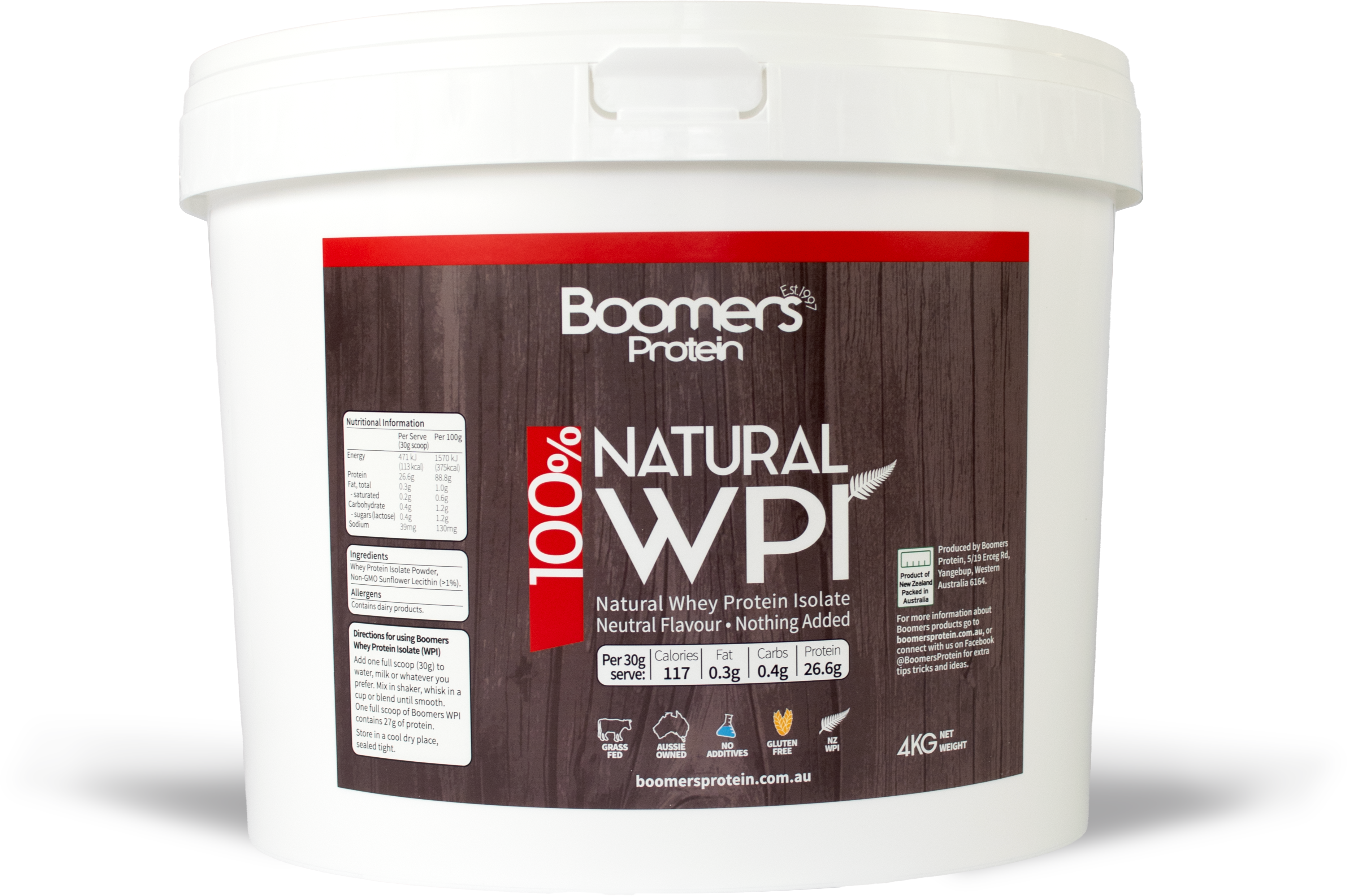 Get the cleanest protein your body deserves. Boomers Whey Protein Isolate (WPI) is made from 100% New Zealand grass-fed whey, delivering over 90% protein per serve with less than 1g carbs and fat.